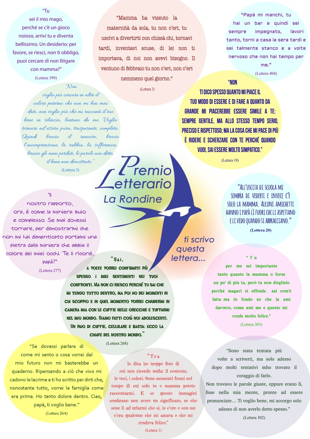 L’associazione culturale “La Rondine” di Cadegliano Viconago (VA) giunta alla seconda edizione del “PREMIO LETTERARIO LA RONDINE: Ti scrivo questa lettera…” che ha visto come tema “Lettera a mio padre”, ha reso nota la lista dei vincitori per l’edizione 2016/2017.